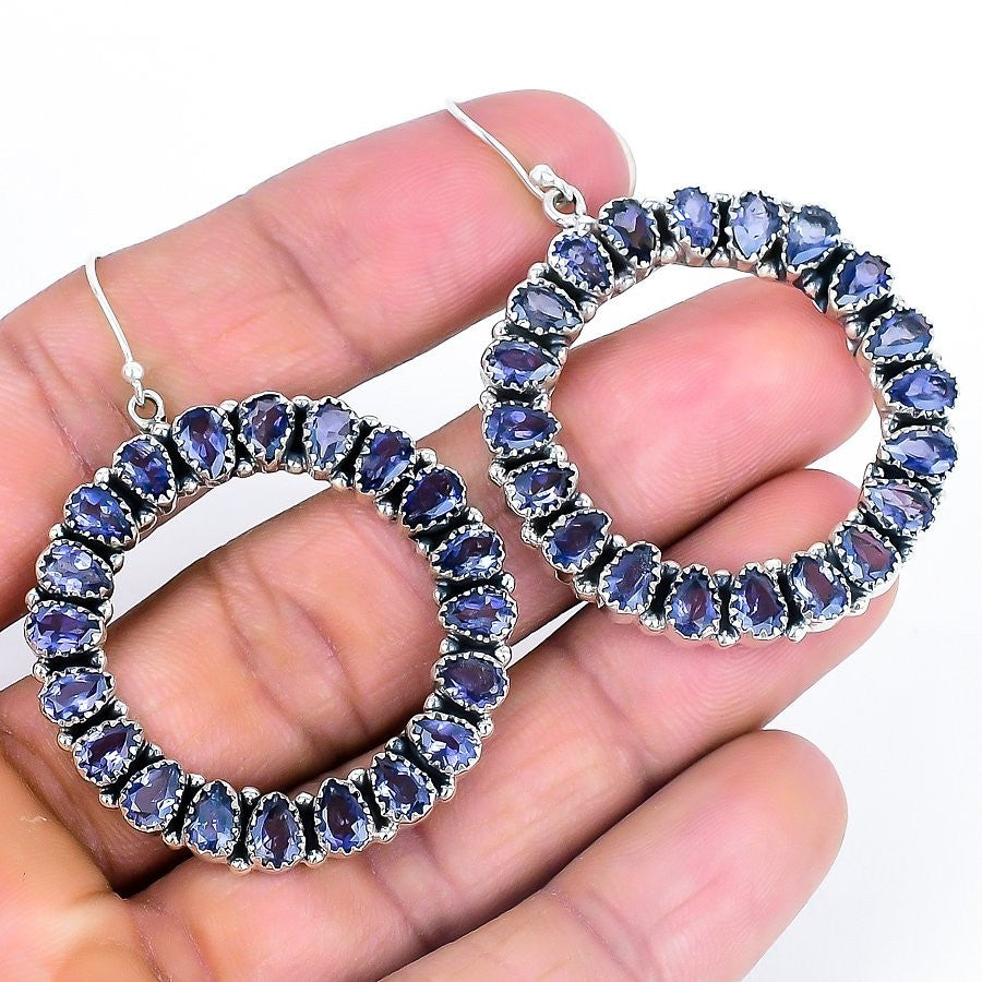 Iolite Gemstone Solid Sterling Silver Sister Unique Dangle Drop Earrings Jewelry