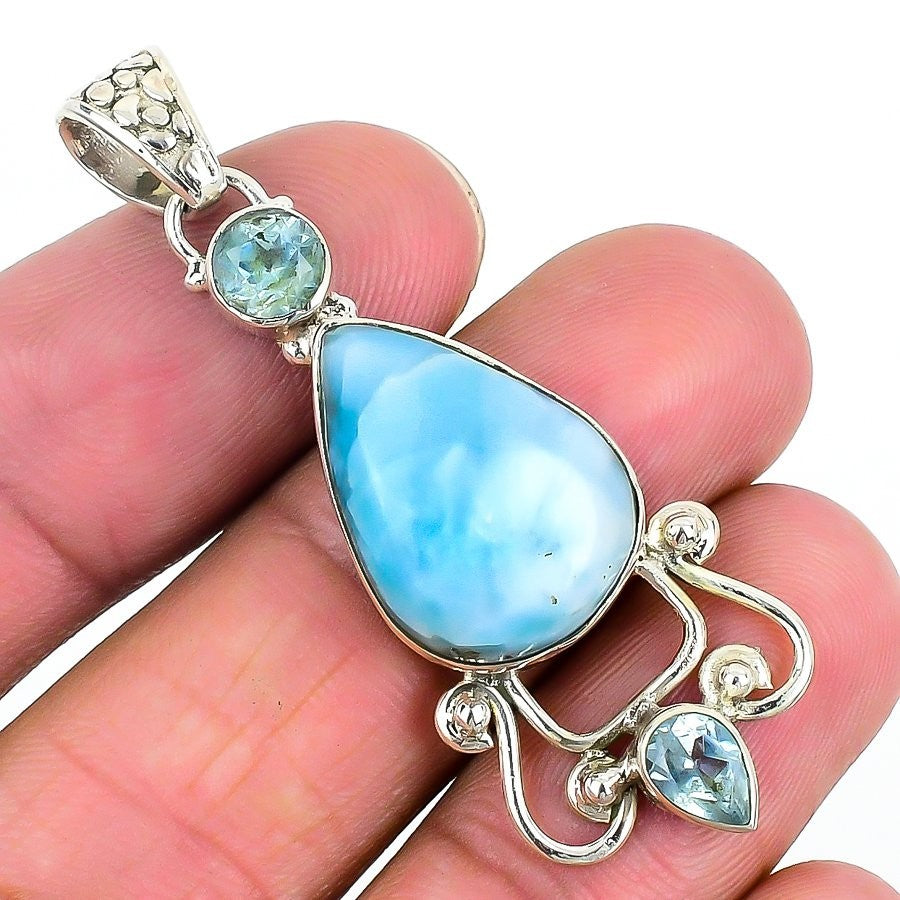 Larimar Stone Solid Silver Channel Set Daughter Anniversary Birthday New Pendant