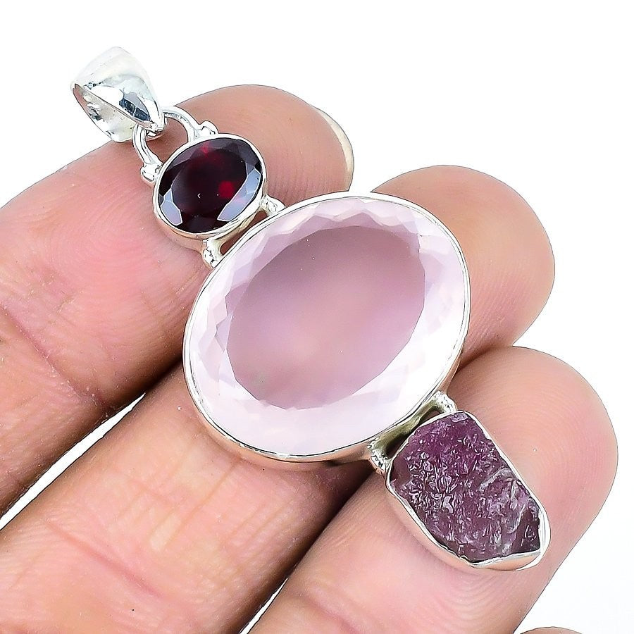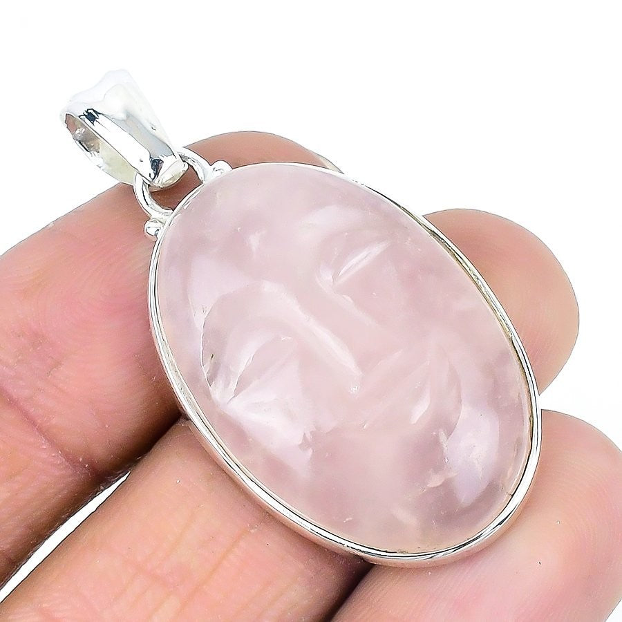 Natural Rose Quartz Face Solid Sterling Silver Birthday Handmade Pendant Jewelry