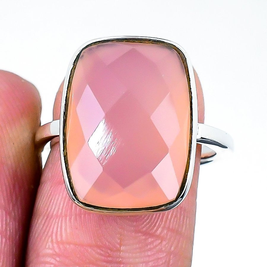Rose Quartz Stone 925 Sterling Silver Band Daughters Day Ring Jewelry Size 6.5