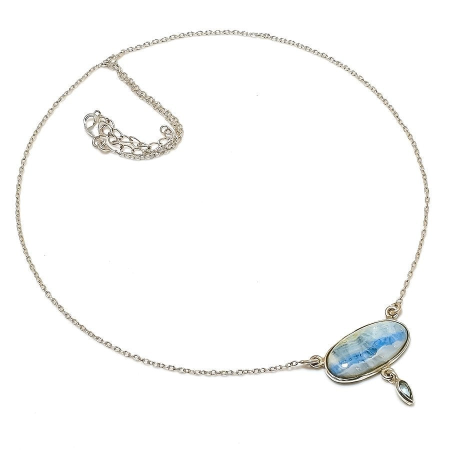 Blue Scheelite Gemstone 925 Silver Unique Chain Art Deco Mother Necklace Jewelry