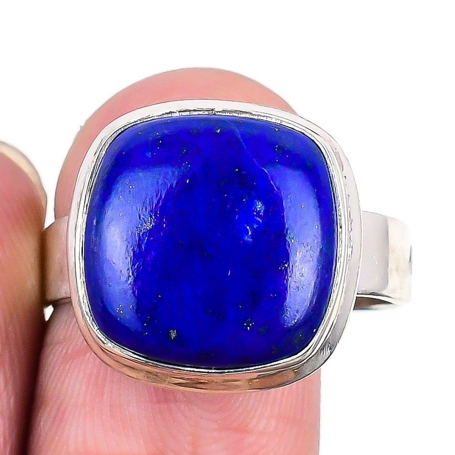 Daughters Day Sale Lapis Lazuli Stone Bezel Statement Ring Size 11 Solid Silver