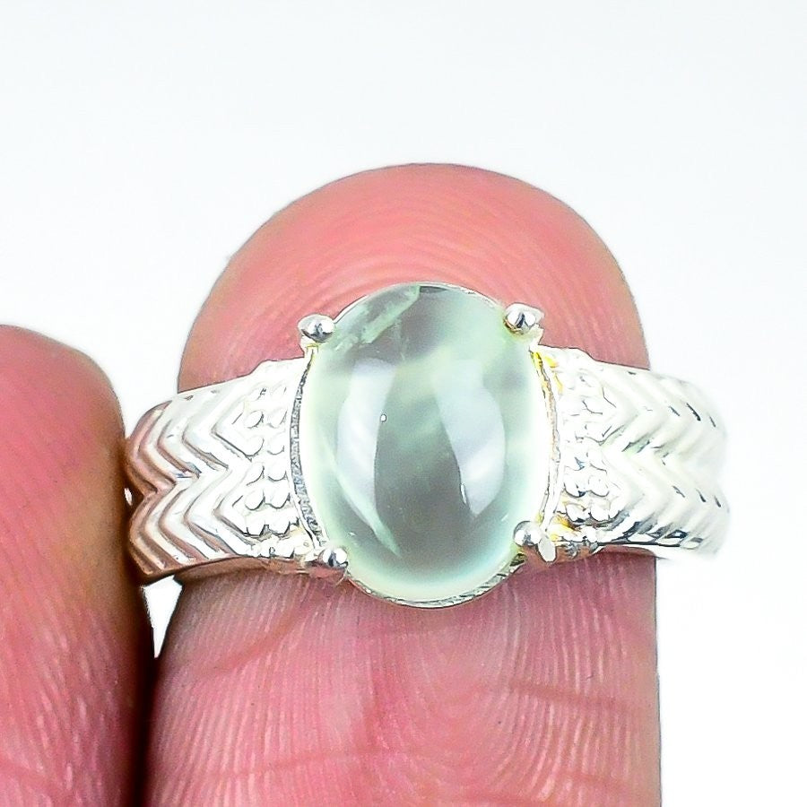 Natural Prehnite Band Boho Birthday Promise Wedding Ring Size 6 925 Solid Silver