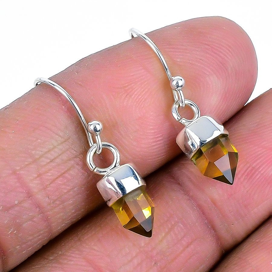 November Birth Citrine Stone Solid Sterling Silver Dangle Wife Earrings Jewelry