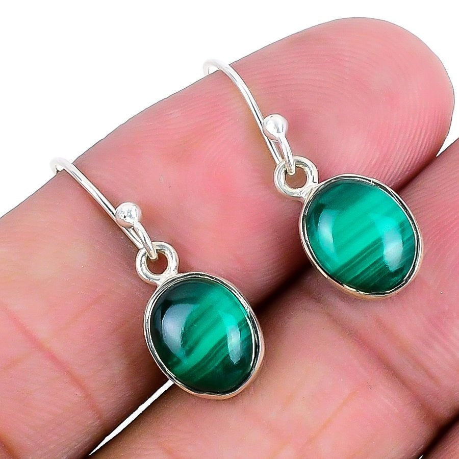 Heart Chakra Malachite Gemstone 925 Silver Bezel Drop Wedding Earrings Jewelry