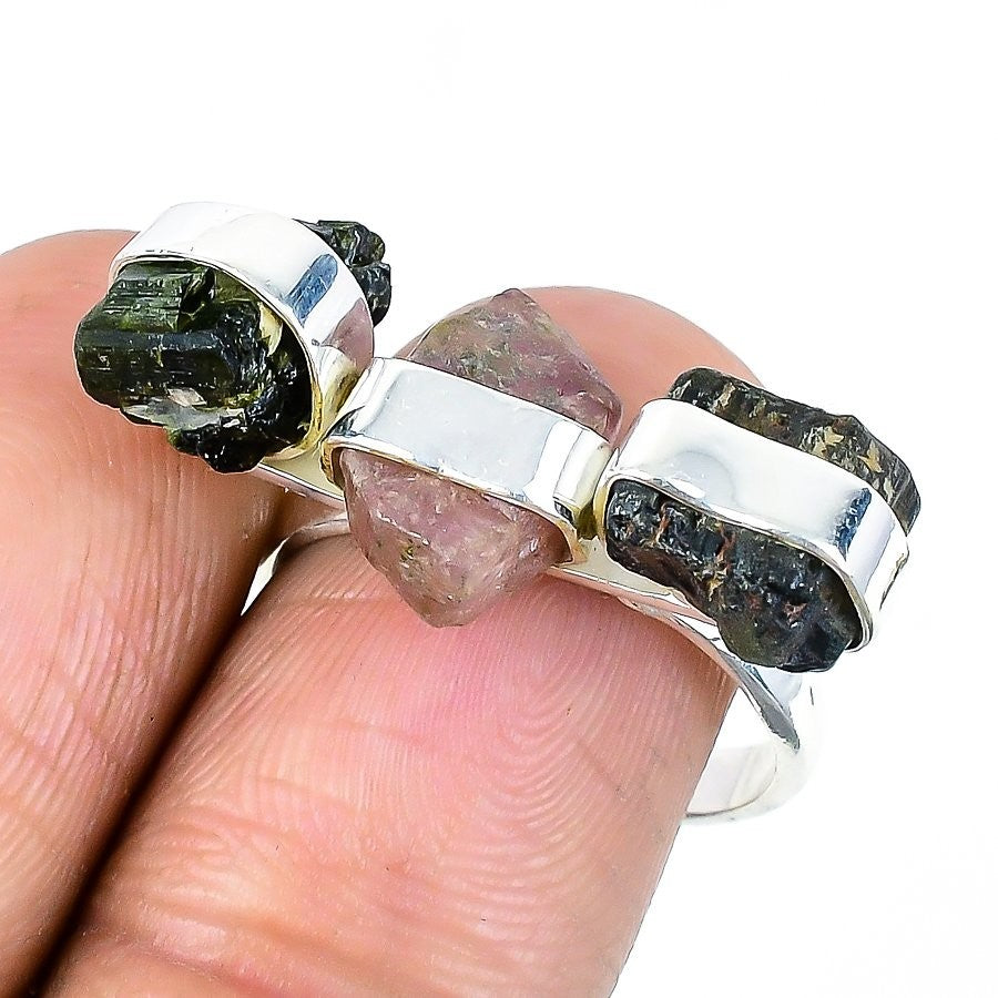 Heart Chakra Pink Tourmaline Gemstone 925 Sterling Silver Statement Ring Jewelry