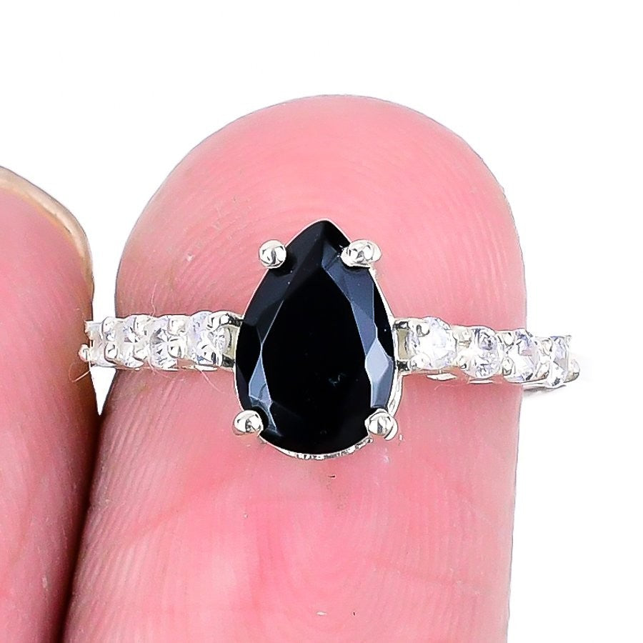 Black Spinel Stone 925Ā SolidĀ Silver Wedding Sister Cluster Ring Jewelry Size 7.5