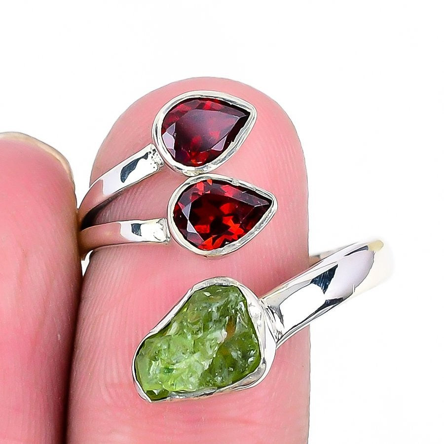 January Mozambique Garnet Gemstone 925Ā SolidĀ Silver Cluster Ring Jewelry Size 8
