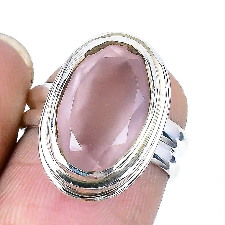 Natural Rose Quartz Faceted 925 Sterling Silver Statement Ring Jewelry Size 6
