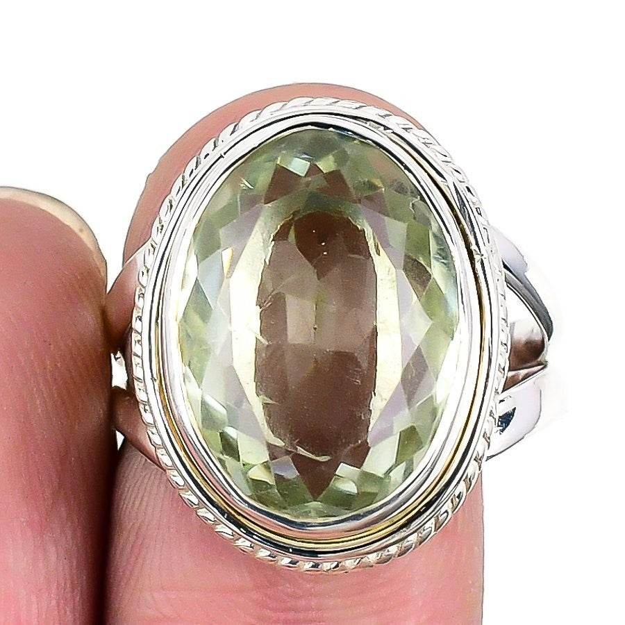 Green Amethyst Stone 925 Sterling Silver Daughters Day Statement New Ring US 9.5