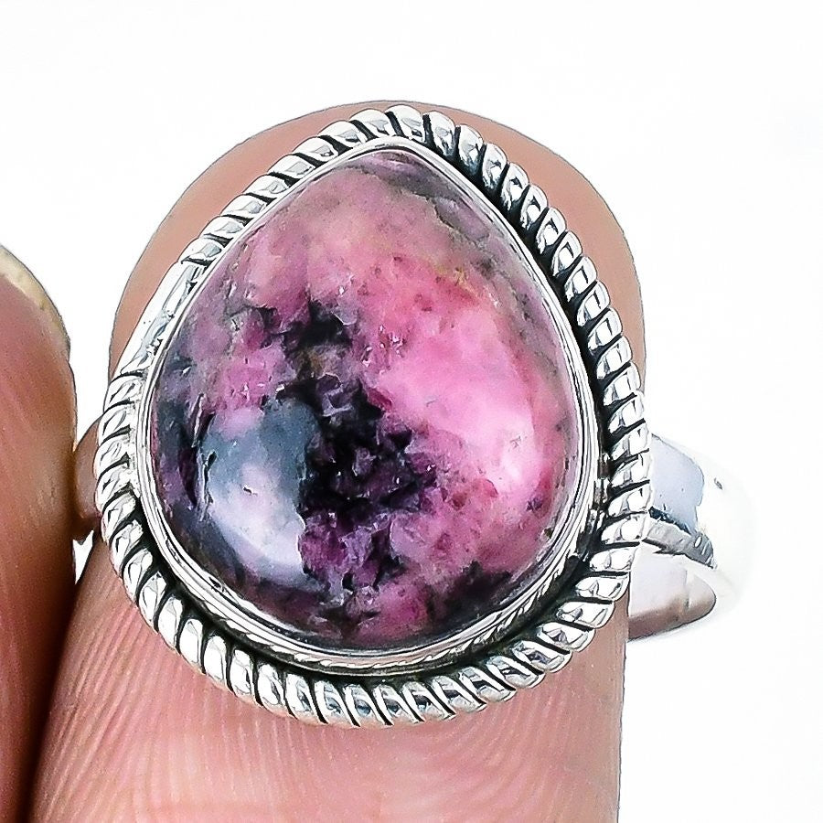 Heart Chakra Rhodonite Gemstone 925Ā SolidĀ Silver Statement Birthday Ring Jewelry
