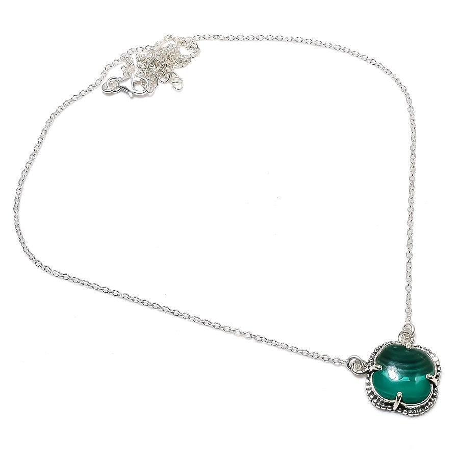 Malachite Gemstone 925Ā SolidĀ Silver Chain Heart Chakra Wedding Necklace Jewelry