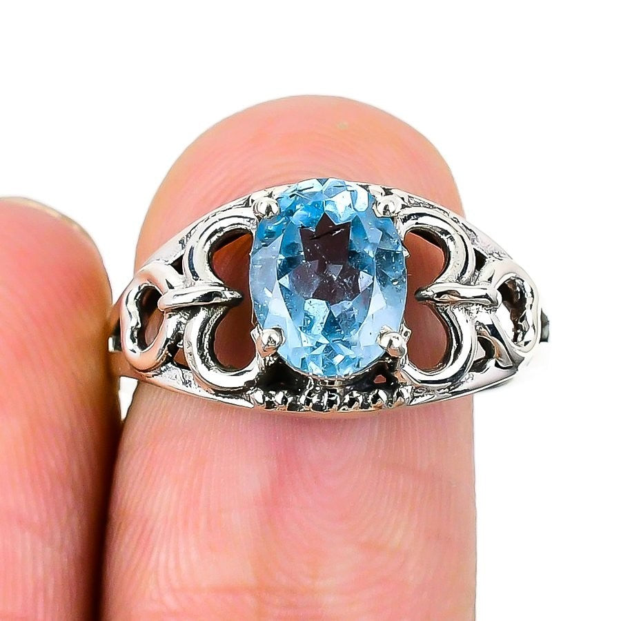 Natural Swiss Blue Topaz 925 Silver Anniversary Statement Ring Jewelry Size 7.5