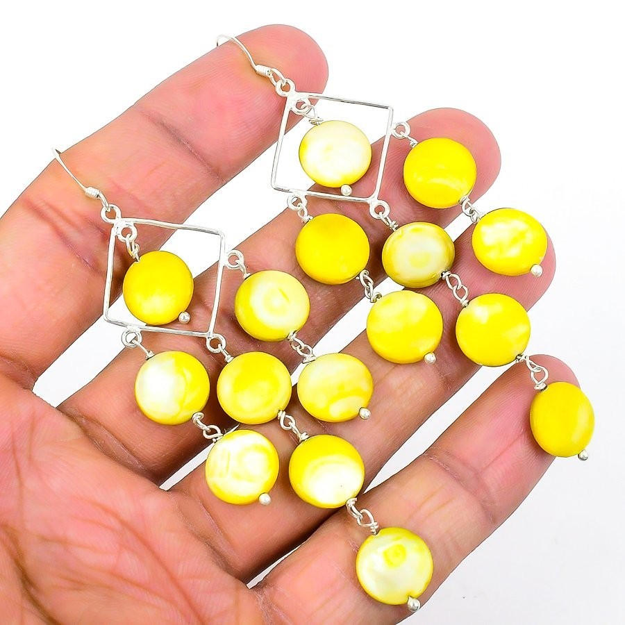 Natural Yellow Pearl Art Deco New Dangle Drop Hook Earrings 925 Sterling Silver