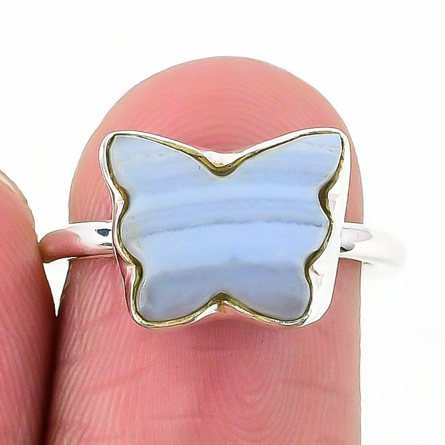 Blue Lace Agate Stone 925Ā SolidĀ Silver Daughter Statement Birthday Ring Size 6