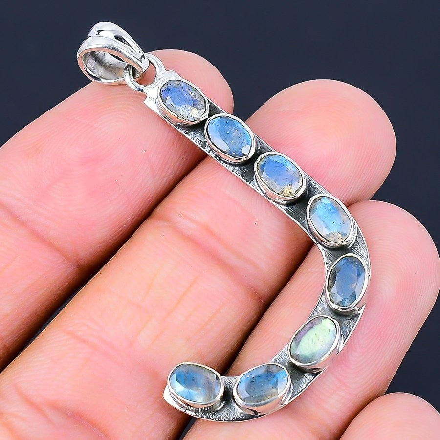 Natural Labradorite Solid Silver Third Eye Chakra Trendy Unique Pendant Jewelry