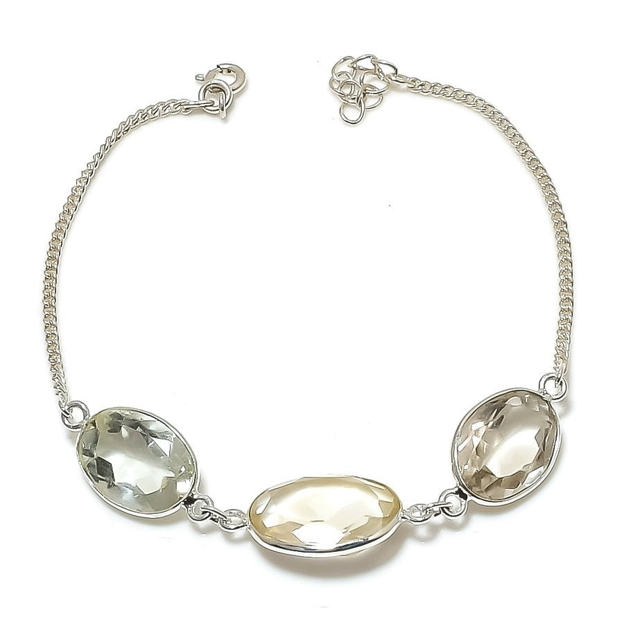 Green Amethyst Gemstone 925Ā SolidĀ Silver Chain Daughter Gift Bracelet Jewelry