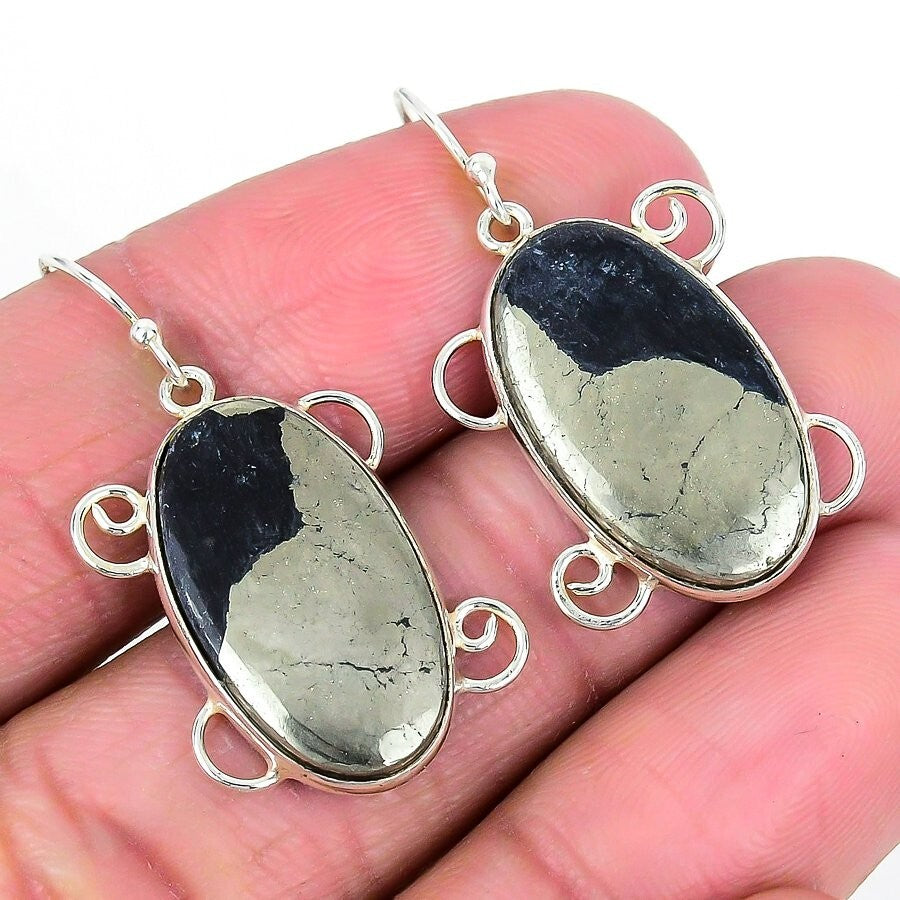 Pyrite Agate Gemstone Handmade Drop Dangle Earrings Jewelry 925 Sterling Silver