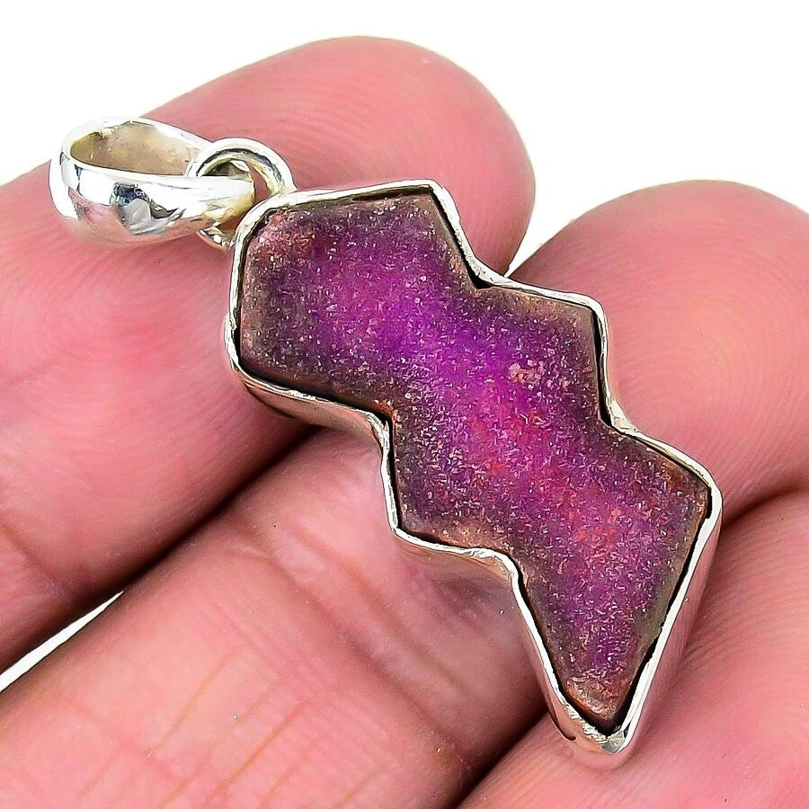 Pink Titanium Druzy Gemstone 925 Silver Engagement Elegant Wife Wedding Pendant