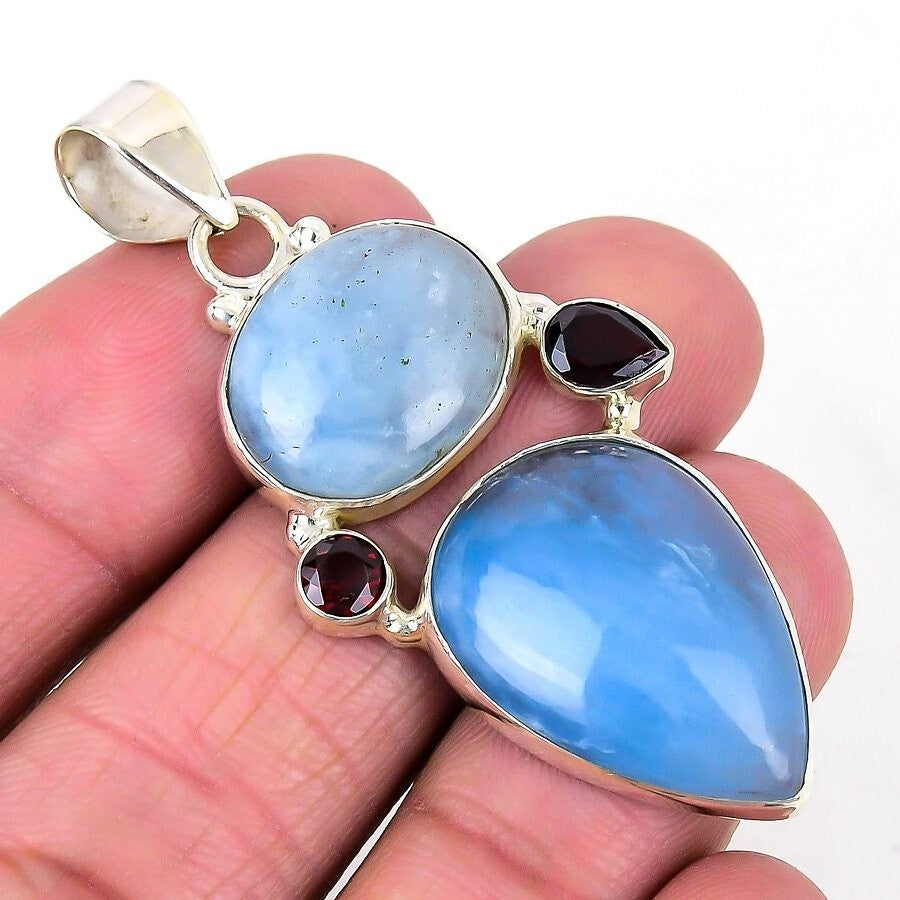 Aquamarine Gemstone Solid Sterling Silver March Channel Set Boho Pendant Jewelry