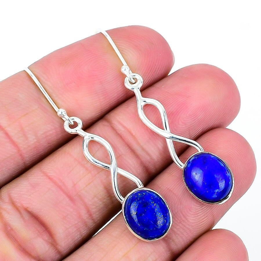Throat Chakra Lapis Lazuli Stone Solid Silver Drop Dangle Boho Earrings Jewelry