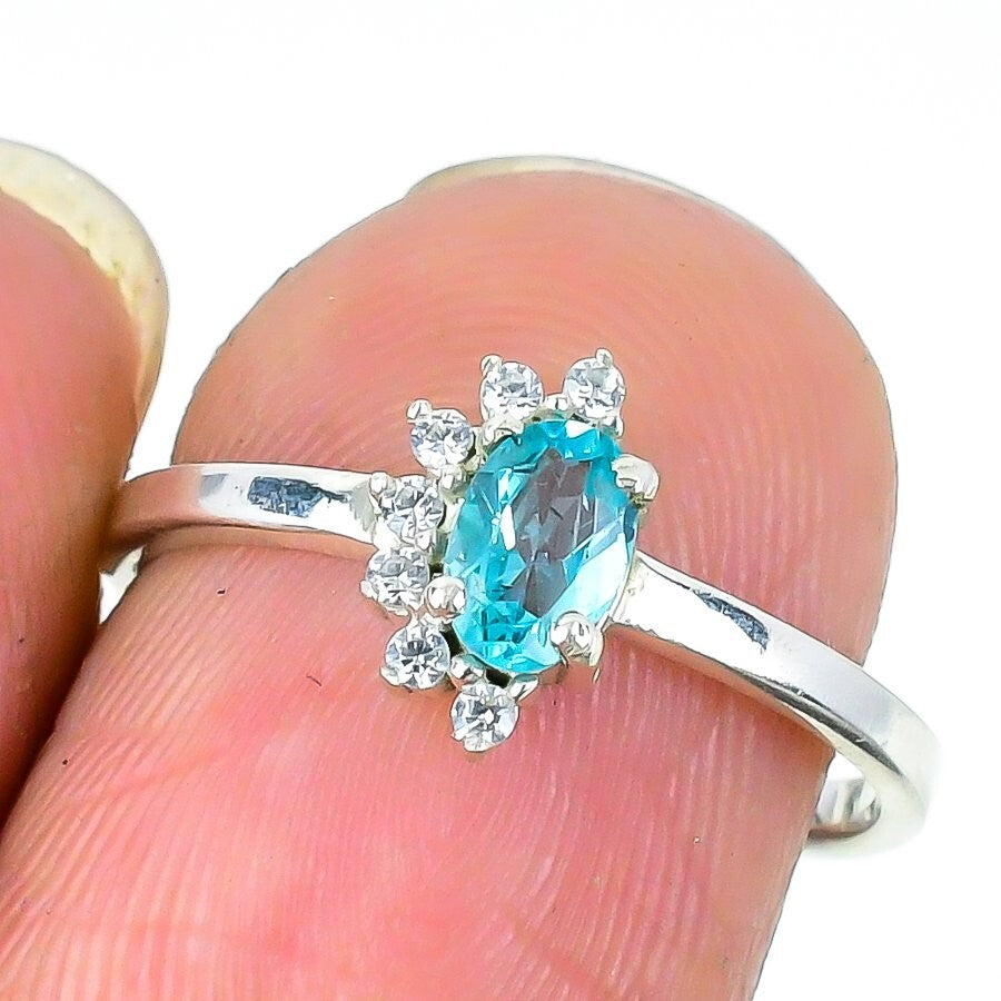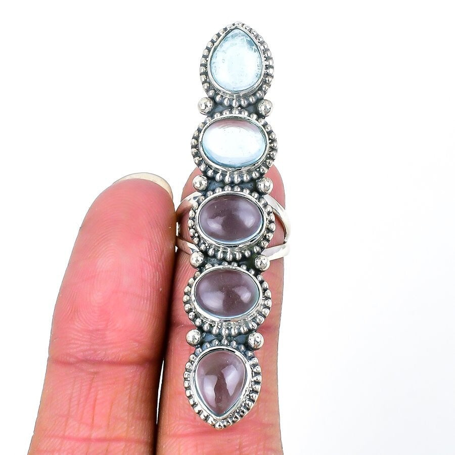 Natural Swiss Blue Topaz 925 Silver Statement Handmade Wife Ring Jewelry US 7.5