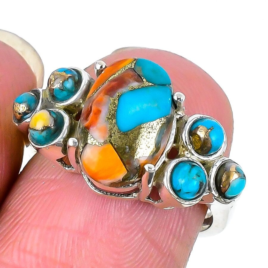 Spiny Oyster Gemstone Solid Sterling Silver Engagement Boho Statement Ring US 7