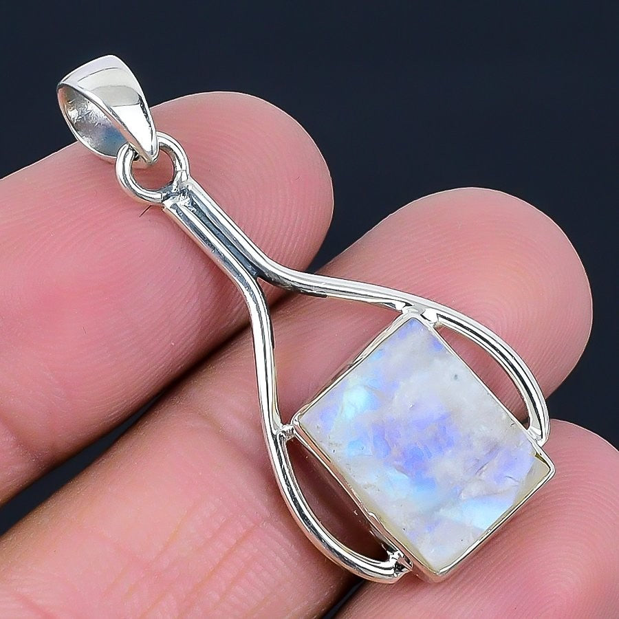 Rainbow Moonstone Stone 925 Solid Silver Anniversary Handcrafted Pendant Jewelry