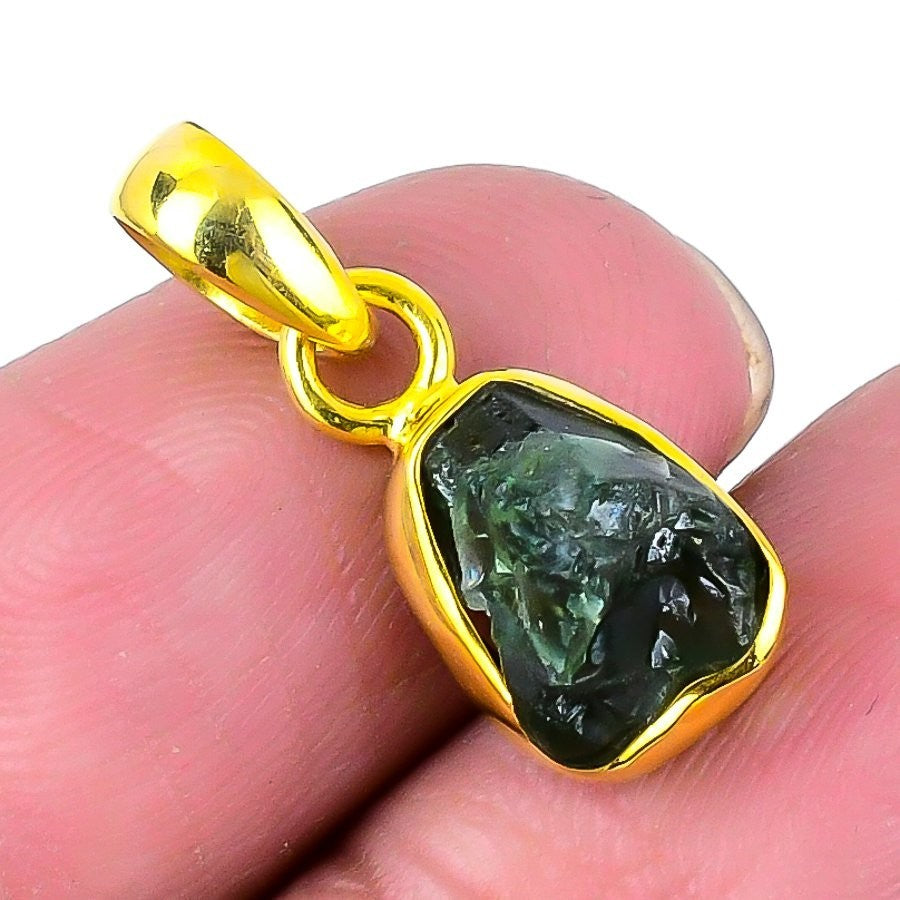 Moldavite Quartz Gemstone 925 Silver Artisan Daughters Day Boho Wedding Pendant