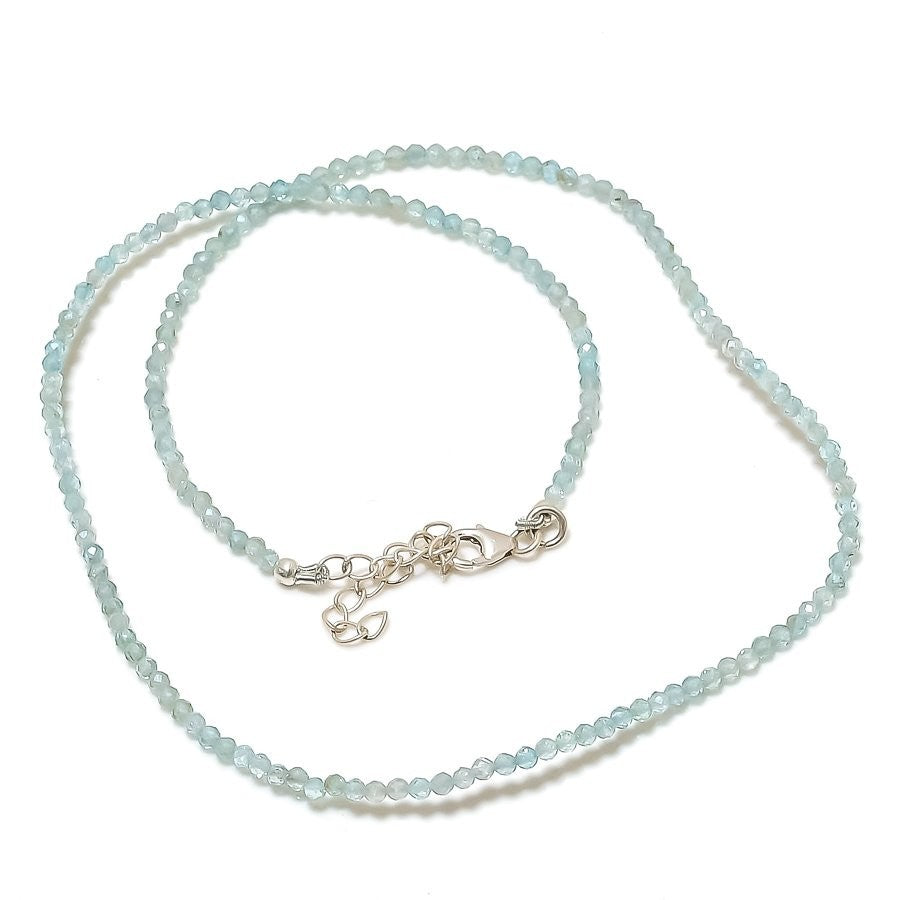 Aquamarine Faceted Gemstone 925 Sterling Silver Chain Elegant Necklace Jewelry