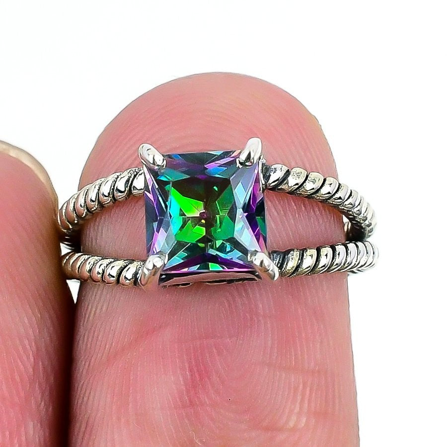 Mystic Topaz Stone Statement Sister Ethnic Handmade Ring Sterling Silver US 6