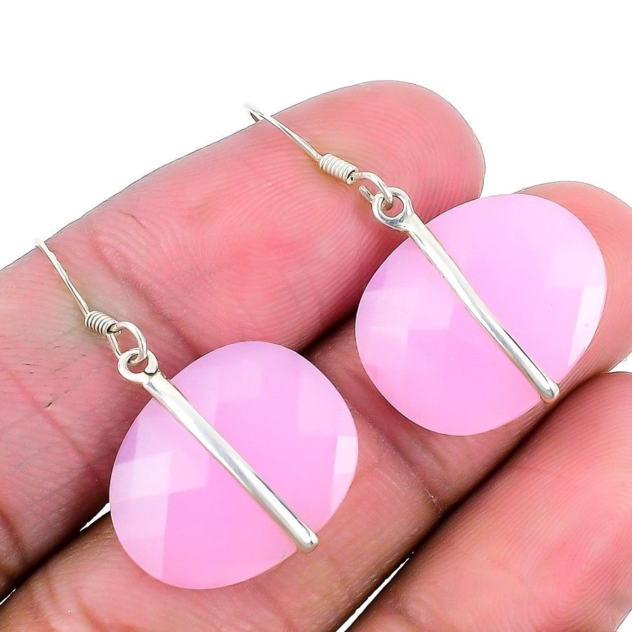 Pink Chalcedony Gemstone Drop Best Daughters Gift Earrings Solid Sterling Silver