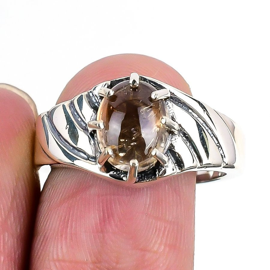 Smoky Topaz Gemstone Engagement Statement Bezel Ring Jewelry 925 Sterling Silver