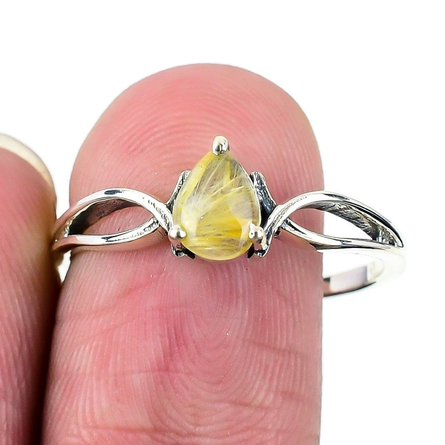 Natural Golden Rutile Solid Sterling Silver Statement Sister Ring Jewelry US 10