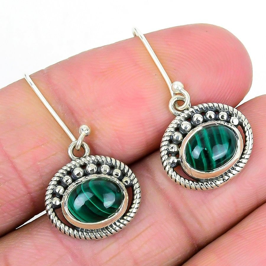 Malachite Stone 925 Silver Artisan Dangle Drop Hook Channel Set Earrings Jewelry