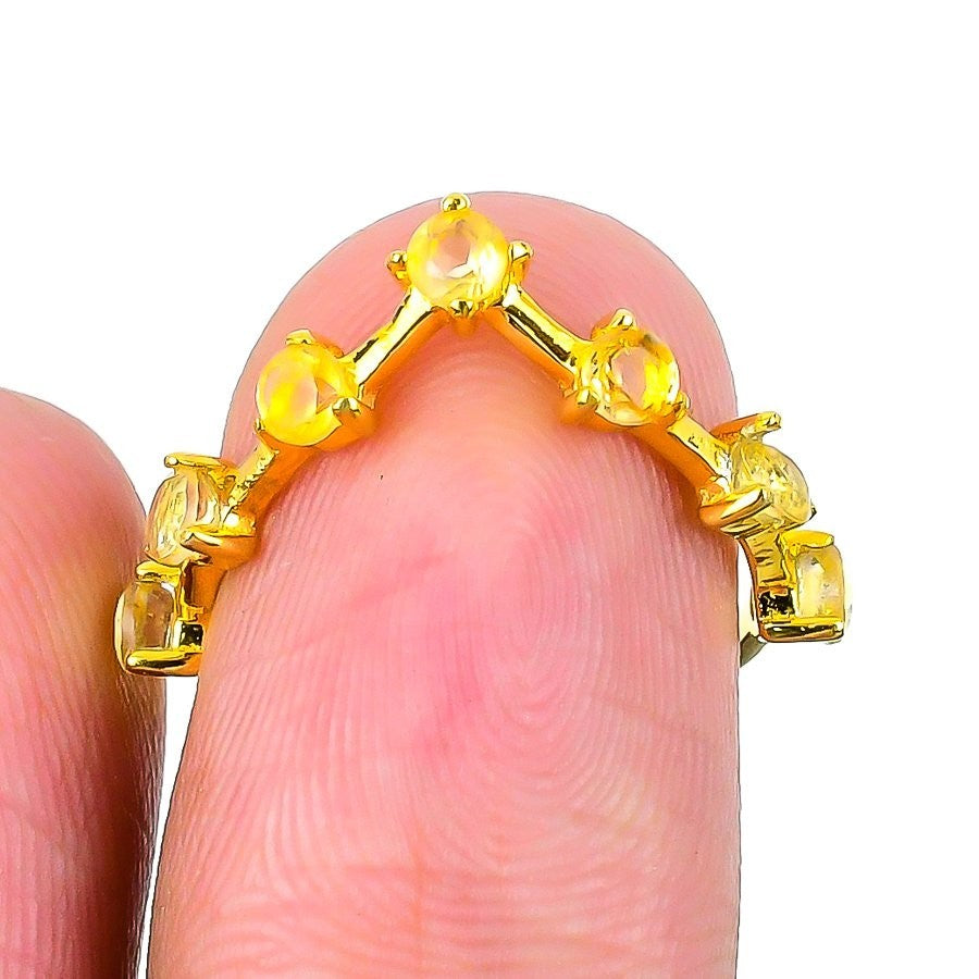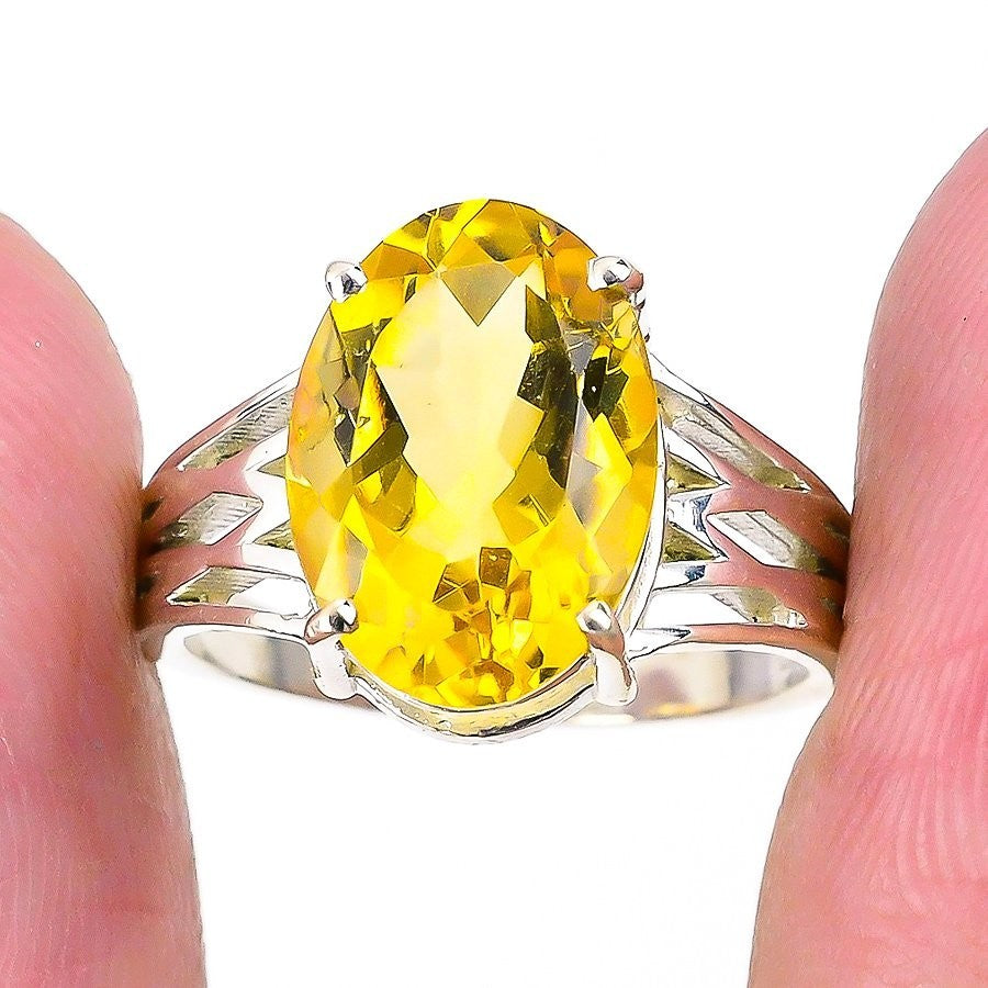 Natural Citrine Solid Silver November Birth Statement Mother Ring Jewelry Size 7