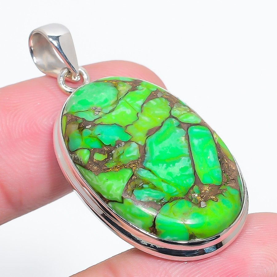 December Copper Green Turquoise Gemstone Wedding Artisan Pendant Solid Silver