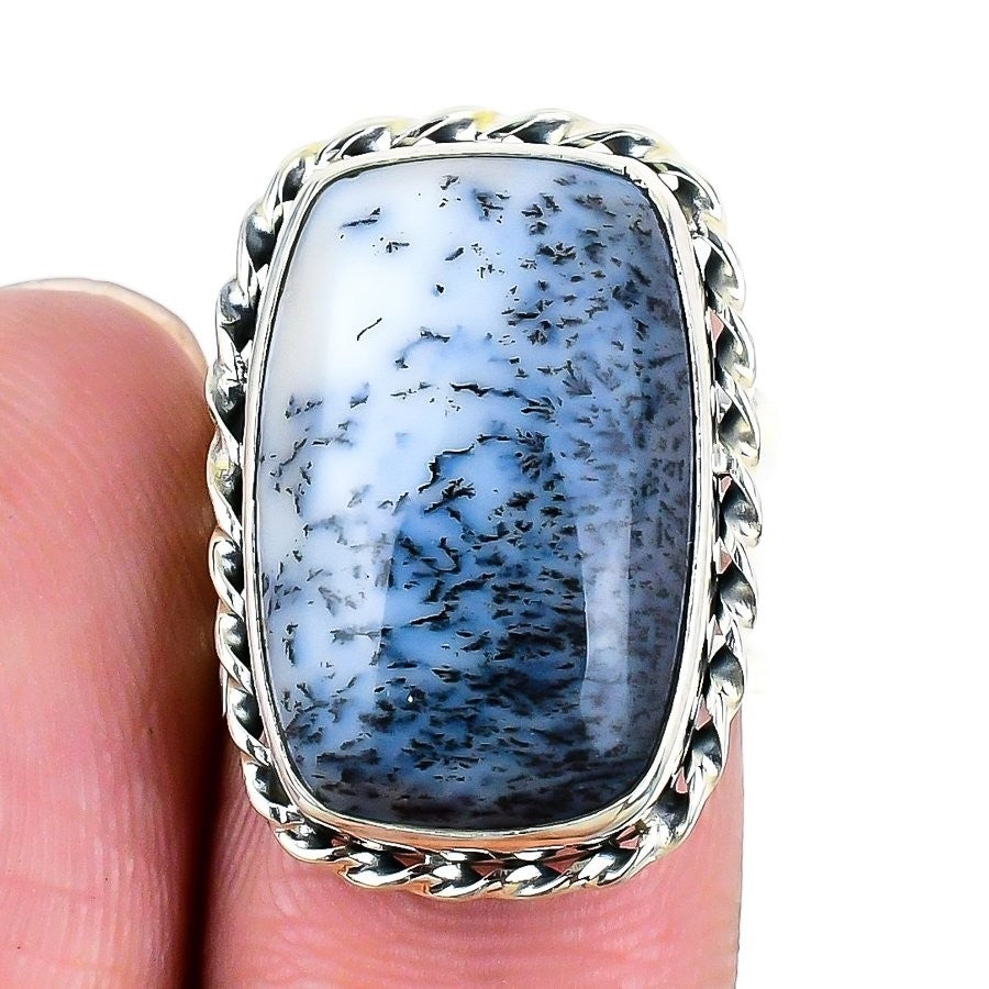 Dendrite Opal Gemstone 925Ā SolidĀ Silver Mother New Statement Ring Jewelry US 5.5