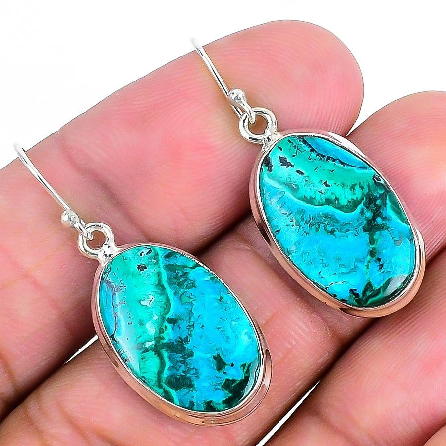 Heart Chakra Natural Malachite Solid Sterling Silver Wife Dangling Hook Earrings