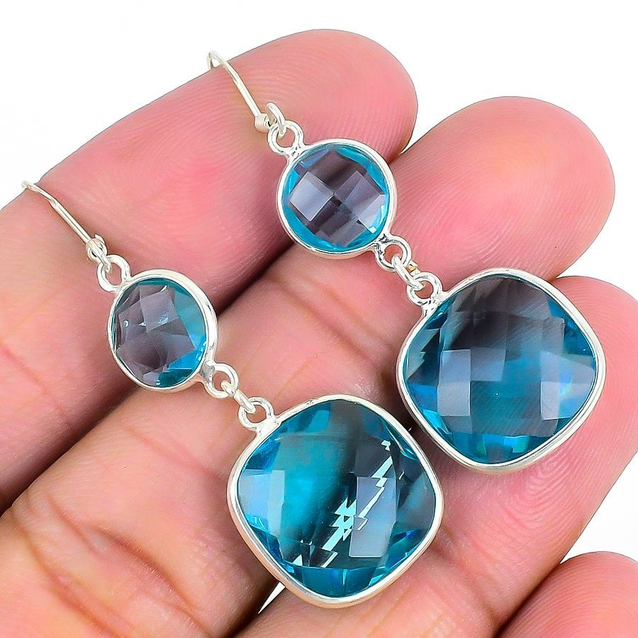 Swiss Blue Topaz Treated Stone 925Ā SolidĀ Silver Hook Daughters Day Drop Earrings