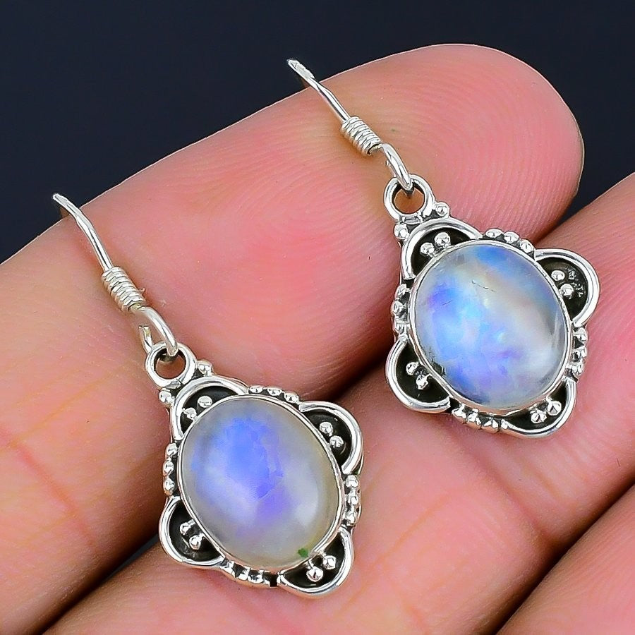 Moonstone Gemstone Solid Silver Hook Dangle Drop Channel Set Earrings Jewelry