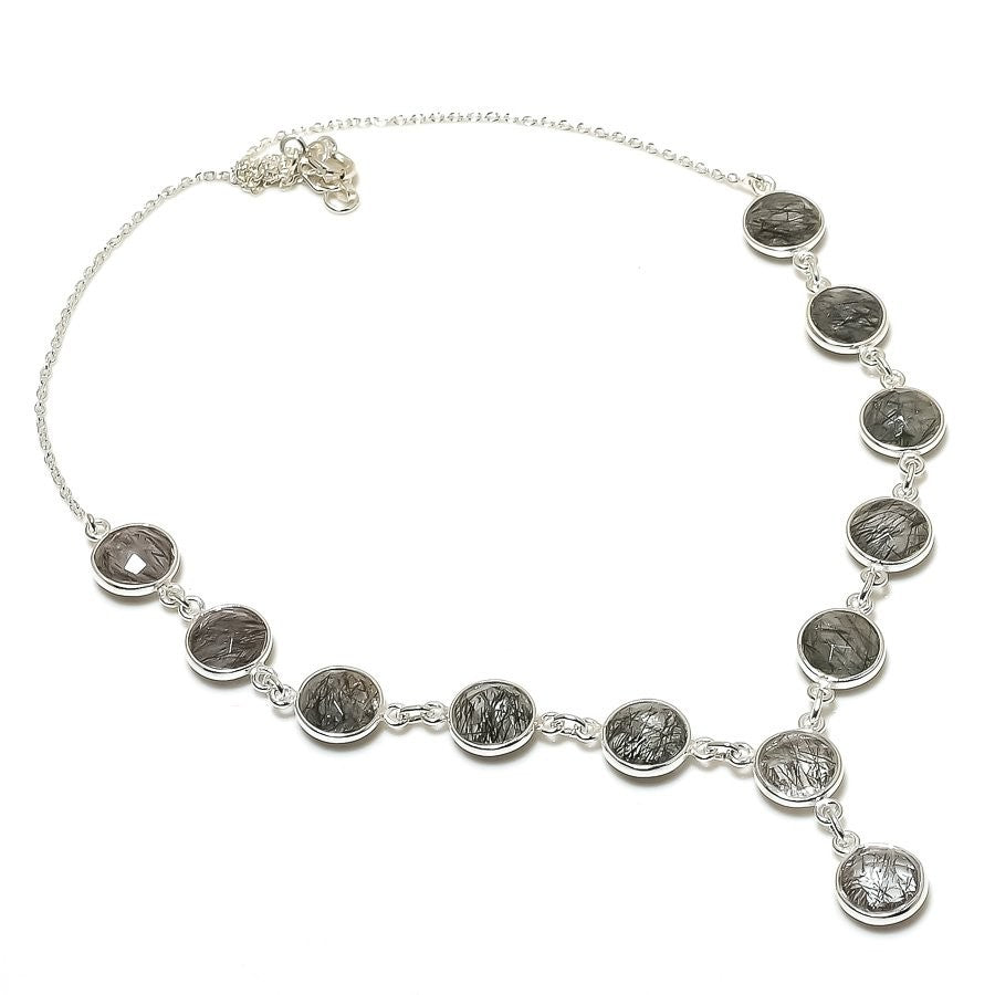 Natural Black Rutile Solid Sterling Silver Chain Handcrafted Necklace Jewelry
