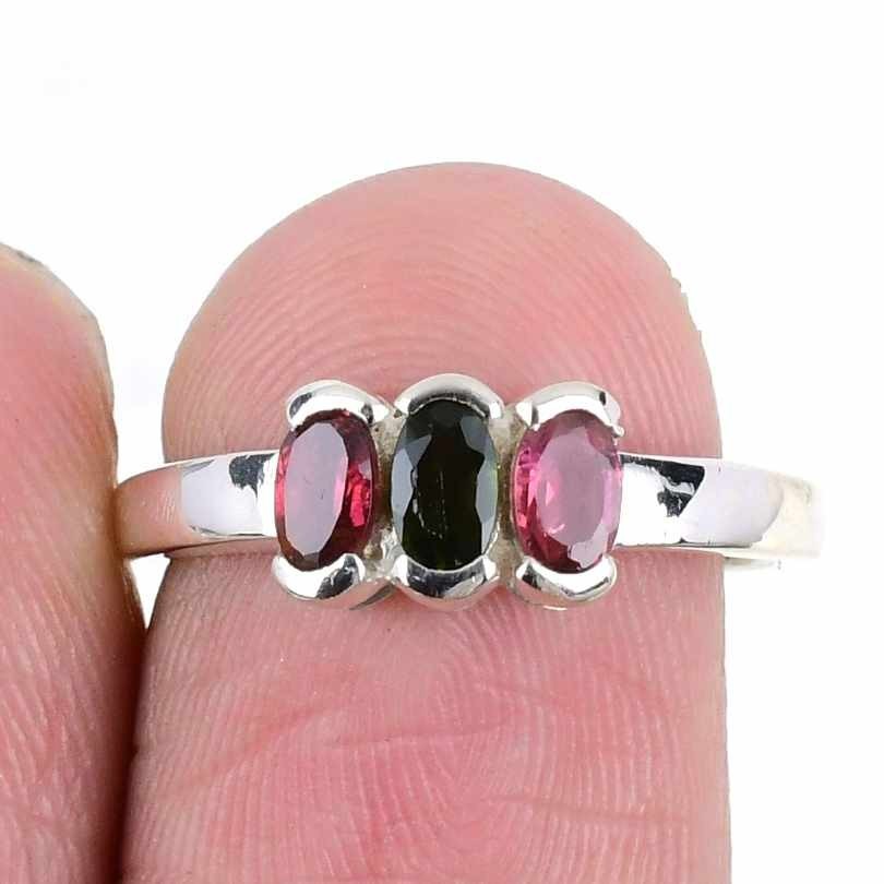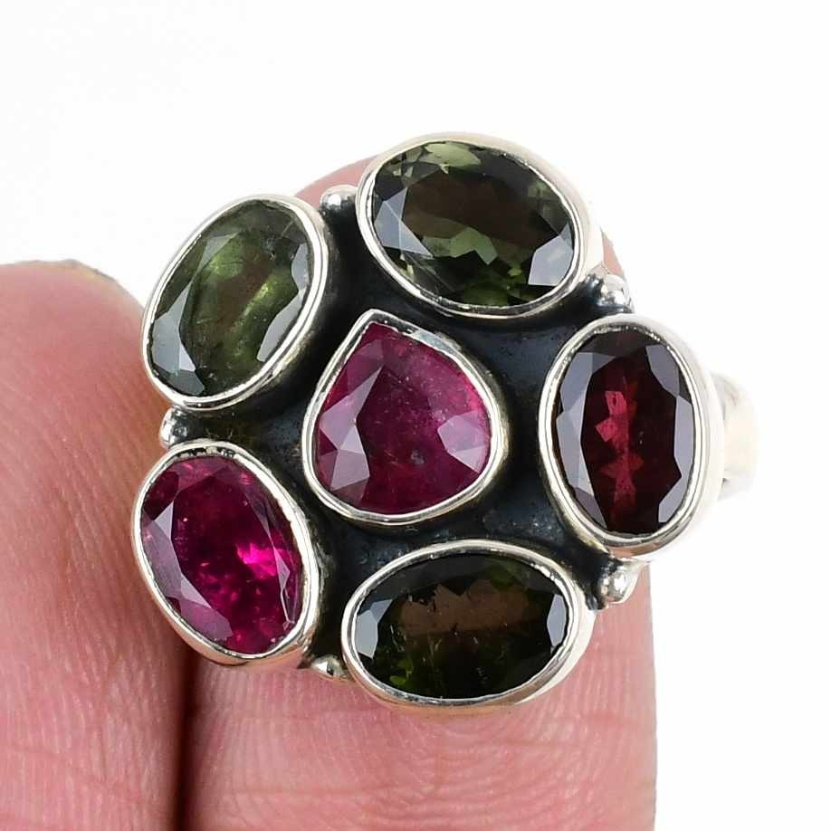 Natural Multi Tourmaline Solid Sterling Silver Cluster Wife Ring Jewelry Size 7