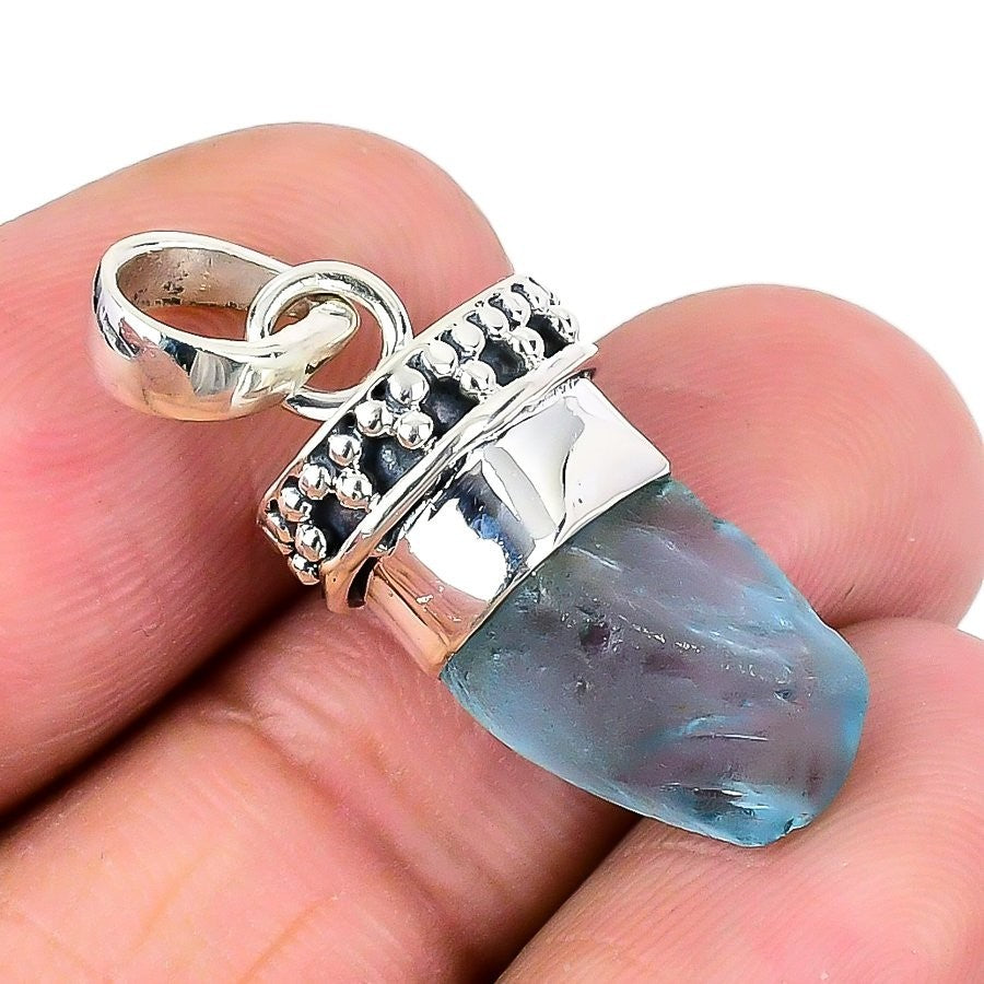 Aquamarine Stone Wedding Handmade Anniversary Pendant Jewelry 925Ā SolidĀ Silver