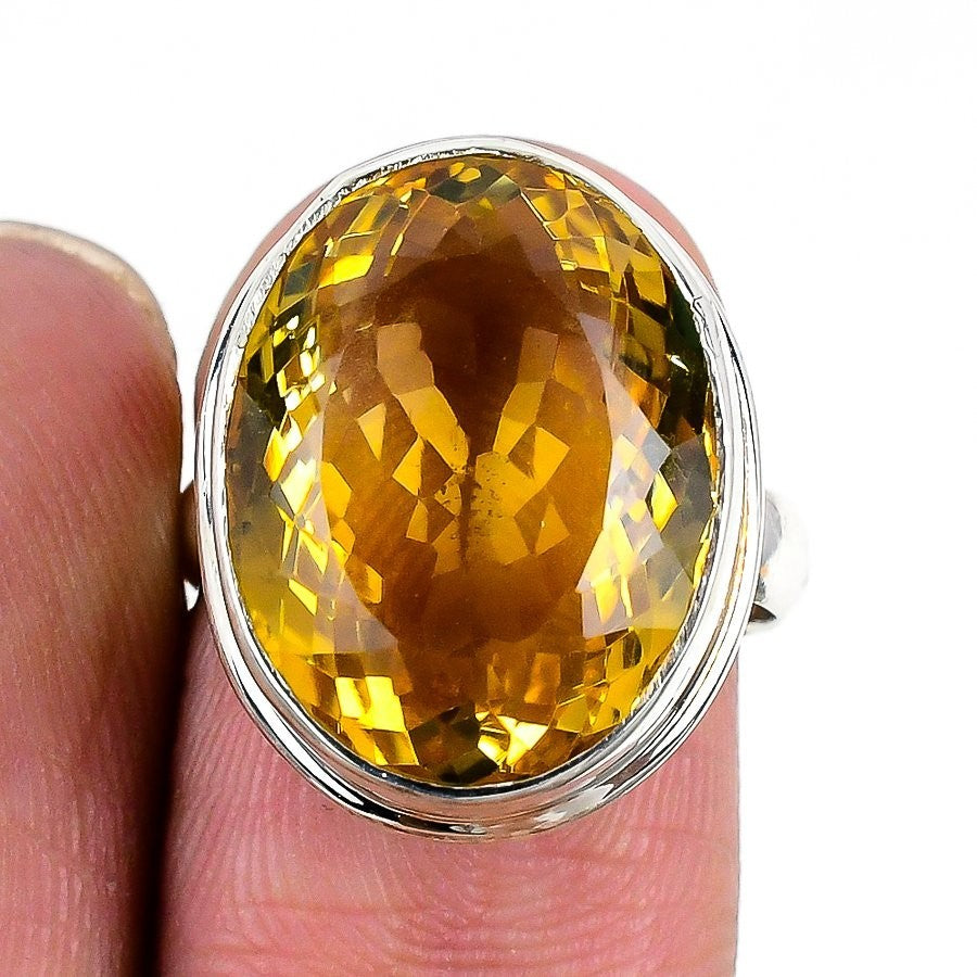 Natural Citrine Wife Statement Bezel Ethnic Ring Jewelry Size 7 925Ā SolidĀ Silver