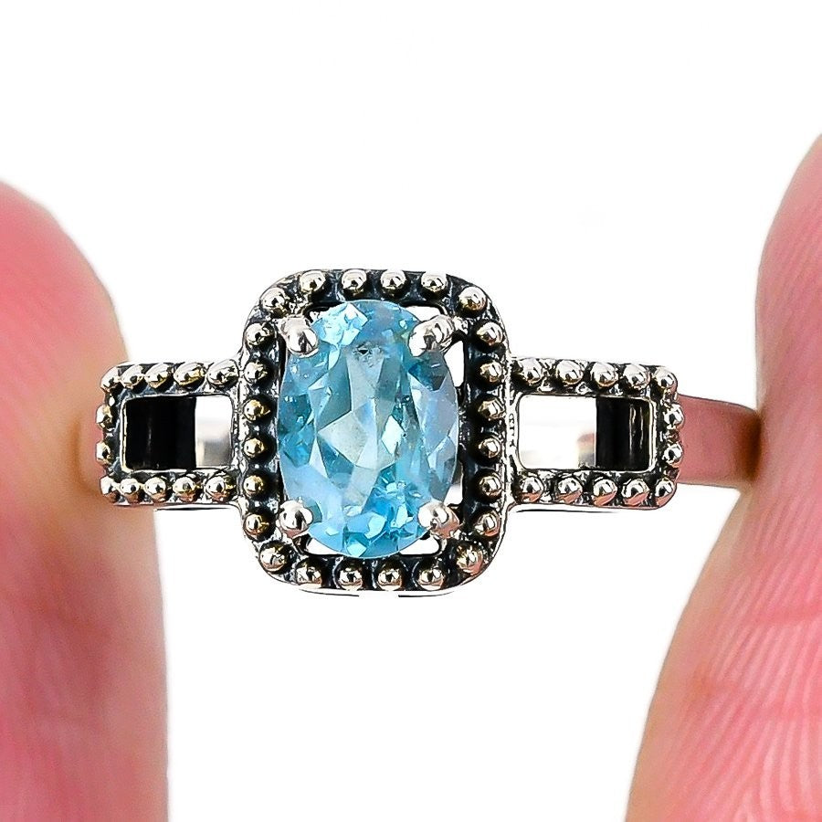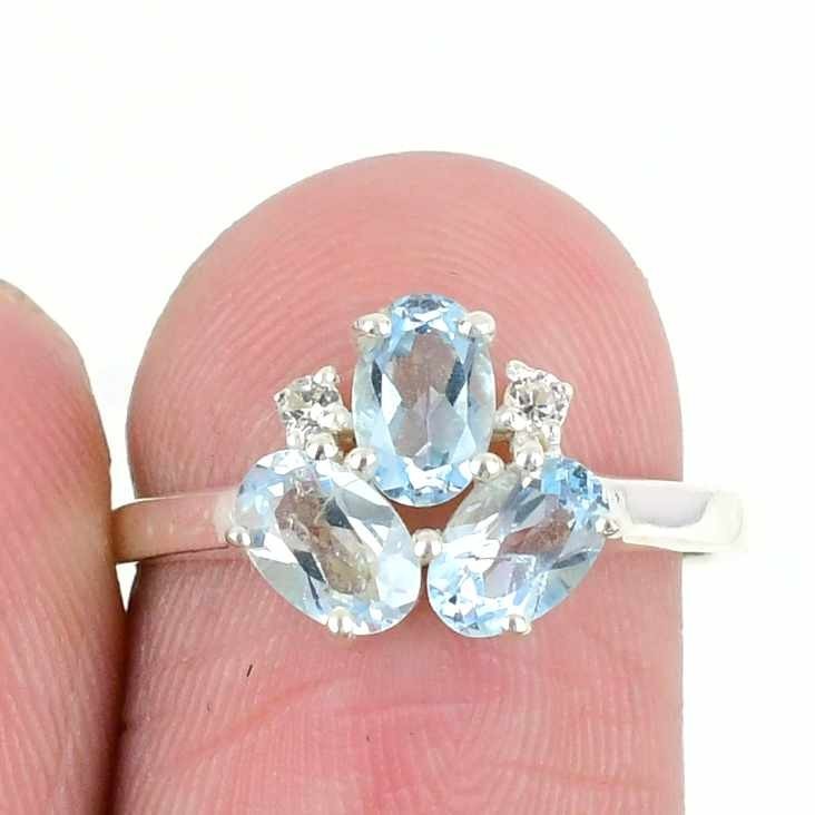 Natural Swiss Blue topaz 925 Silver Anniversary Elegant Wife Cluster Ring Size 7
