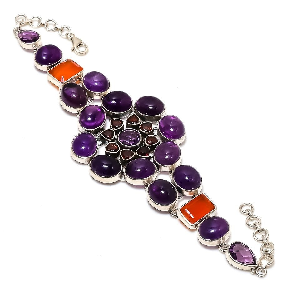 Crown Chakra Sage Amethyst Gemstone 925 Silver Elegant Chain Bracelet Jewelry