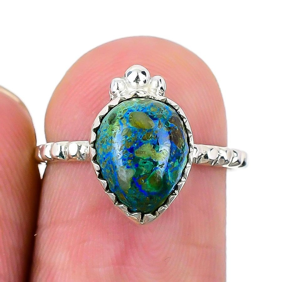 Azurite Stone Statement Birthday Anniversary Ring Jewelry Size 6 Sterling Silver