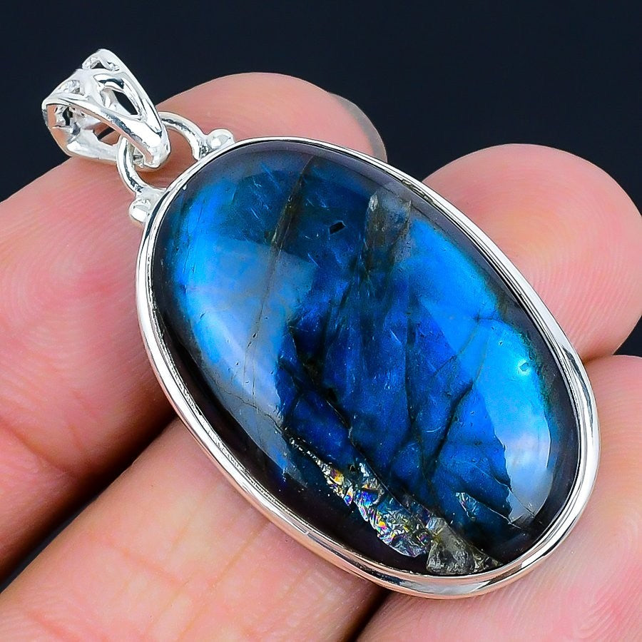 Natural Labradorite Third Eye Chakra Trendy Pendant Jewelry 925 Sterling Silver