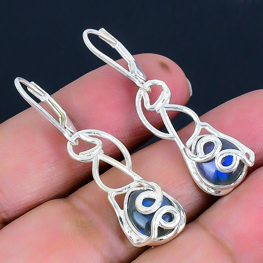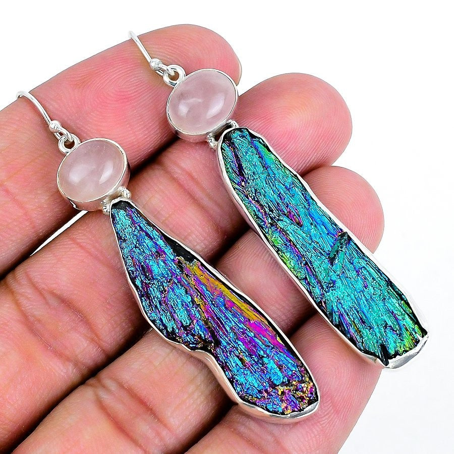 Titanium Kyanite Gemstone Sterling Silver Bezel Dangle Trendy Earrings Jewelry
